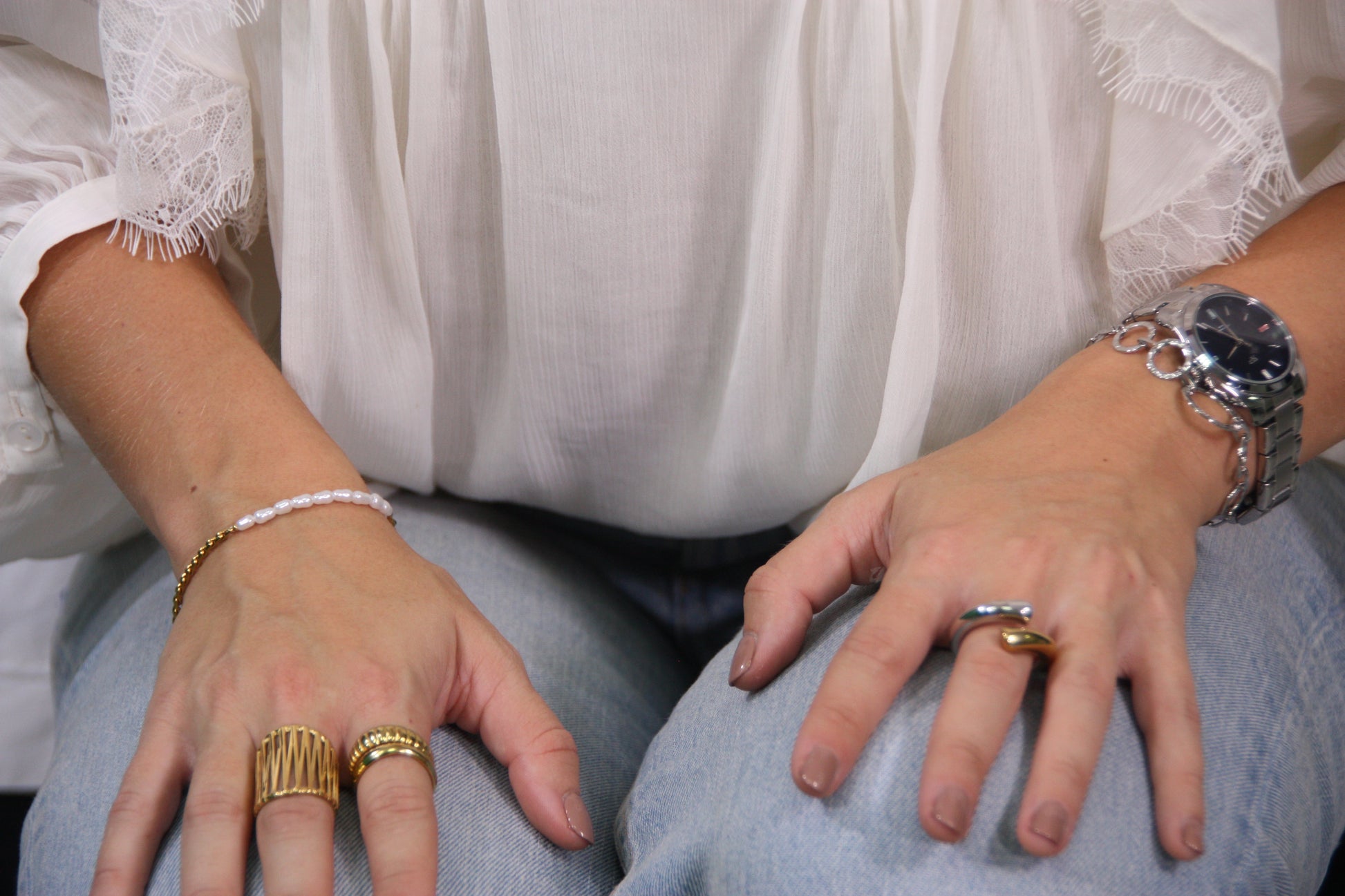 Materiales: acero inoxidable 316L con baño de oro 18K + cuentas efecto perla