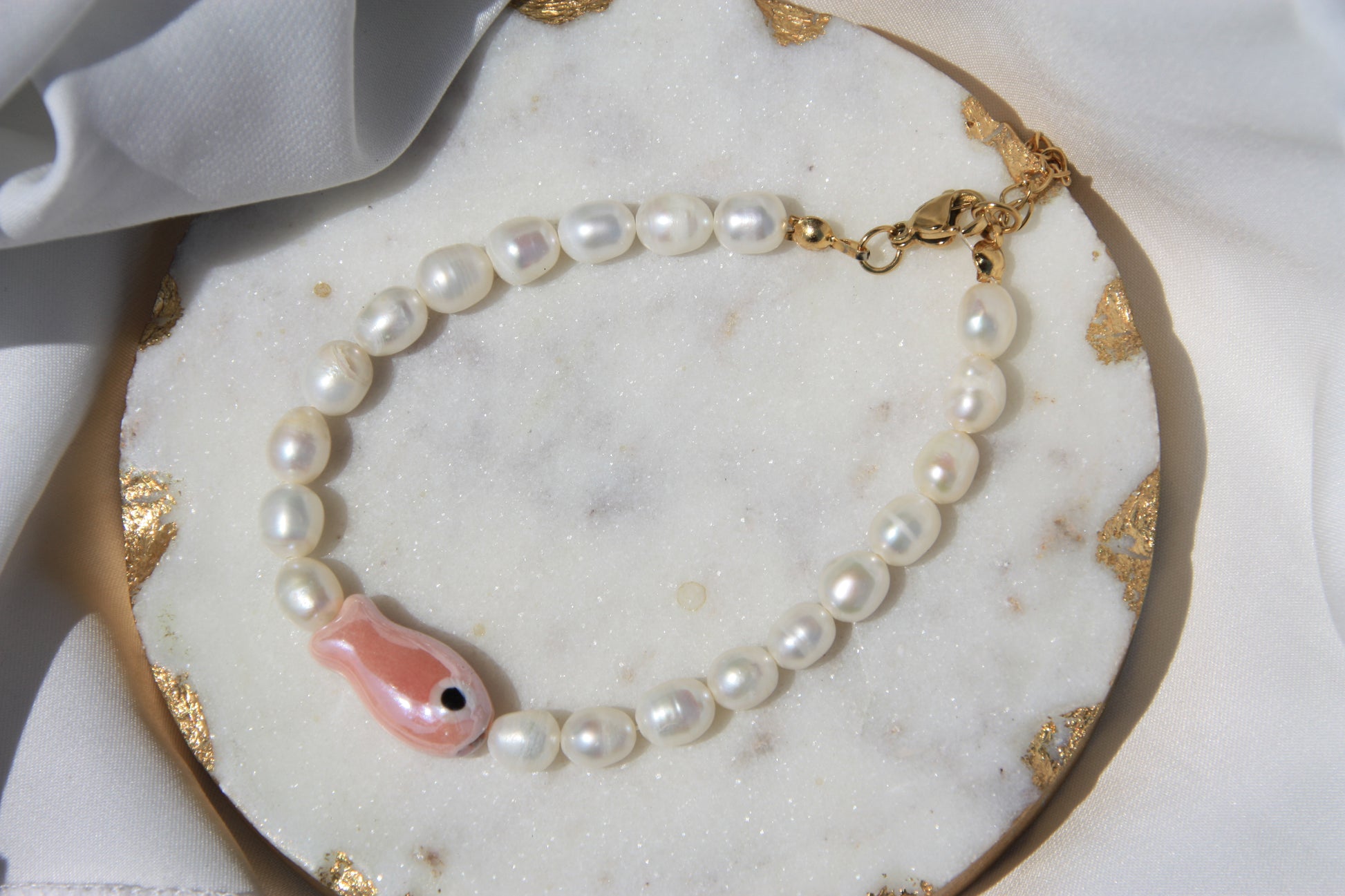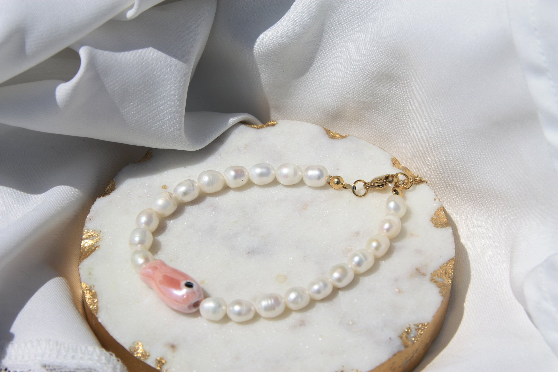 - Pulsera de Perlas con pez rosa